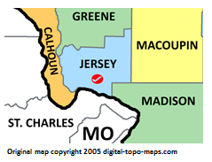 | current | ★ Approved revision 18:30, 28 August 2018 | 239 × 183 (22 KB) | Bethcottam (talk | contribs) | Map courtesy of [https://www.digital-topo-maps.com/county-map/illinois.shtml]. Copyright 2005.<br> Category:Illinois Maps Category:Jersey County, Illinois |