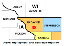 | current | ★ Approved revision 12:32, 3 June 2018 | 224 × 161 (14 KB) | Dotxinxoz (talk | contribs) | Map courtesy of [https://www.digital-topo-maps.com/county-map/illinois.shtml Digital-Topo-Maps.com]. Copyright 2005.<br> Category:Illinois Maps Category:Jo Daviess County, Illinois |