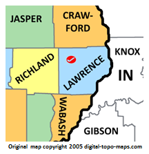 | current | ★ Approved revision 11:37, 5 June 2018 | 216 × 223 (26 KB) | Dotxinxoz (talk | contribs) | Map courtesy of [https://www.digital-topo-maps.com/county-map/illinois.shtml Digital-Topo-Maps.com]. Copyright 2005.<br> Category:Illinois Maps Category:Lawrence County, Illinois |