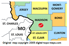 | current | ★ Approved revision 11:44, 5 June 2018 | 229 × 153 (23 KB) | Dotxinxoz (talk | contribs) | Map courtesy of [https://www.digital-topo-maps.com/county-map/illinois.shtml Digital-Topo-Maps.com]. Copyright 2005.<br> Category:Illinois Maps Category:Madison County, Illinois |