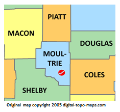 Thumbnail for version as of 16:05, 5 June 2018235 × 220 (18 KB)Dotxinxoz (talk | contribs)Map courtesy of [https://www.digital-topo-maps.com/county-map/illinois.shtml Digital-Topo-Maps.com]. Copyright 2005.<br> Category:Illinois Maps Category:Moultrie County, Illinois