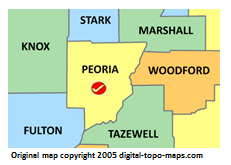 Thumbnail for version as of 16:08, 5 June 2018231 × 165 (17 KB)Dotxinxoz (talk | contribs)Map courtesy of [https://www.digital-topo-maps.com/county-map/illinois.shtml Digital-Topo-Maps.com]. Copyright 2005.<br> Category:Illinois Maps Category:Peoria County, Illinois
