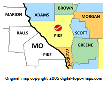 | current | ★ Approved revision 16:12, 5 June 2018 | 214 × 170 (19 KB) | Dotxinxoz (talk | contribs) | Map courtesy of [https://www.digital-topo-maps.com/county-map/illinois.shtml Digital-Topo-Maps.com]. Copyright 2005.<br> Category:Illinois Maps Category:Pike County, Illinois |