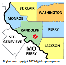 | current | ★ Approved revision 16:26, 5 June 2018 | 224 × 219 (28 KB) | Dotxinxoz (talk | contribs) | Map courtesy of [https://www.digital-topo-maps.com/county-map/illinois.shtml Digital-Topo-Maps.com]. Copyright 2005.<br> Category:Illinois Maps Category:Randolph County, Illinois |
