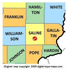 | current | ★ Approved revision 16:31, 5 June 2018 | 228 × 234 (28 KB) | Dotxinxoz (talk | contribs) | Map courtesy of [https://www.digital-topo-maps.com/county-map/illinois.shtml Digital-Topo-Maps.com]. Copyright 2005.<br> Category:Illinois Maps Category:Saline County, Illinois |