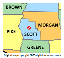 Thumbnail for version as of 16:36, 5 June 2018218 × 199 (19 KB)Dotxinxoz (talk | contribs)Map courtesy of [https://www.digital-topo-maps.com/county-map/illinois.shtml Digital-Topo-Maps.com]. Copyright 2005.<br> Category:Illinois Maps Category:Scott County, Illinois