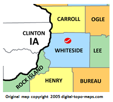 Thumbnail for version as of 16:54, 5 June 2018227 × 205 (21 KB)Dotxinxoz (talk | contribs)Map courtesy of [https://www.digital-topo-maps.com/county-map/illinois.shtml Digital-Topo-Maps.com]. Copyright 2005.<br> Category:Illinois Maps Category:Whiteside County, Illinois