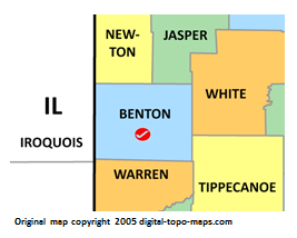 | current | ★ Approved revision 17:50, 11 September 2018 | 267 × 214 (18 KB) | Bethcottam (talk | contribs) | Map courtesy of [https://www.digital-topo-maps.com/county-map/indiana.shtml]. Copyright 2005.<br> Category:Indiana Maps Category:Benton County, Indiana |