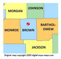 | current | ★ Approved revision 18:17, 11 September 2018 | 238 × 232 (19 KB) | Bethcottam (talk | contribs) | Map courtesy of [https://www.digital-topo-maps.com/county-map/indiana.shtml]. Copyright 2005.<br> Category:Indiana Maps Category:Brown County, Indiana |