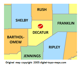 | current | ★ Approved revision 12:48, 12 September 2018 | 262 × 219 (22 KB) | Bethcottam (talk | contribs) | Map courtesy of [https://www.digital-topo-maps.com/county-map/indiana.shtml]. Copyright 2005.<br> Category:Indiana Maps Category:Decatur County, Indiana |