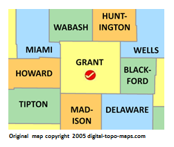 | current | ★ Approved revision 11:20, 13 September 2018 | 251 × 212 (23 KB) | Bethcottam (talk | contribs) | Map courtesy of [https://www.digital-topo-maps.com/county-map/indiana.shtml]. Copyright 2005.<br> Category:Indiana Maps Category:Grant County, Indiana |