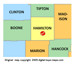 | current | ★ Approved revision 11:57, 13 September 2018 | 252 × 219 (18 KB) | Bethcottam (talk | contribs) | Map courtesy of [https://www.digital-topo-maps.com/county-map/indiana.shtml]. Copyright 2005.<br> Category:Indiana Maps Category:Hamilton County, Indiana |