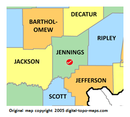 | current | ★ Approved revision 18:10, 15 September 2018 | 258 × 232 (26 KB) | Bethcottam (talk | contribs) | Map courtesy of [https://www.digital-topo-maps.com/county-map/indiana.shtml]. Copyright 2005.<br> Category:Indiana Maps Category:Jennings County, Indiana |