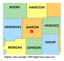 | current | ★ Approved revision 12:53, 17 September 2018 | 250 × 236 (21 KB) | Bethcottam (talk | contribs) | Map courtesy of [https://www.digital-topo-maps.com/county-map/indiana.shtml]. Copyright 2005.<br> Category:Indiana Maps Category:Marion County, Indiana |
