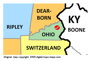 | current | ★ Approved revision 09:11, 18 September 2018 | 314 × 210 (27 KB) | Bethcottam (talk | contribs) | Map courtesy of [https://www.digital-topo-maps.com/county-map/indiana.shtml]. Copyright 2005.<br> Category:Indiana Maps Category:Ohio County, Indiana |