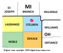 | current | ★ Approved revision 13:36, 21 September 2018 | 265 × 222 (18 KB) | Bethcottam (talk | contribs) | Map courtesy of [https://www.digital-topo-maps.com/county-map/indiana.shtml]. Copyright 2005.<br> Category:Indiana Maps Category:Steuben County, Indiana |