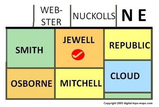 | current | ★ Approved revision 09:26, 13 September 2017 | 560 × 376 (38 KB) | Amberannelarsen (talk | contribs) | Map courtesy of [https://www.digital-topo-maps.com/county-map/kansas.shtml/ Digital-Topo-Maps.com]. Copyright 2005. Category:Kansas Maps Category: Jewell County, Kansas |