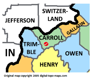 | current | ★ Approved revision 07:15, 6 June 2018 | 308 × 263 (42 KB) | Dotxinxoz (talk | contribs) | Map courtesy of [https://www.digital-topo-maps.com/county-map/kentucky.shtml Digital-Topo-Maps.com]. Copyright 2005.<br> Category:Kentucky Maps Category:Carroll County, Kentucky |