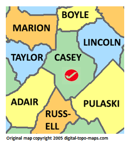 | current | ★ Approved revision 07:19, 6 June 2018 | 269 × 295 (48 KB) | Dotxinxoz (talk | contribs) | Map courtesy of [https://www.digital-topo-maps.com/county-map/kentucky.shtml Digital-Topo-Maps.com]. Copyright 2005.<br> Category:Kentucky Maps Category:Casey County, Kentucky |