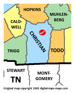 | current | ★ Approved revision 07:34, 6 June 2018 | 243 × 302 (37 KB) | Dotxinxoz (talk | contribs) | Map courtesy of [https://www.digital-topo-maps.com/county-map/kentucky.shtml Digital-Topo-Maps.com]. Copyright 2005.<br> Category:Kentucky Maps Category:Christian County, Kentucky |