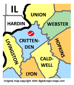 | current | ★ Approved revision 08:21, 6 June 2018 | 254 × 291 (46 KB) | Dotxinxoz (talk | contribs) | Map courtesy of [https://www.digital-topo-maps.com/county-map/kentucky.shtml Digital-Topo-Maps.com]. Copyright 2005.<br> Category:Kentucky Maps Category:Crittenden County, Kentucky |
