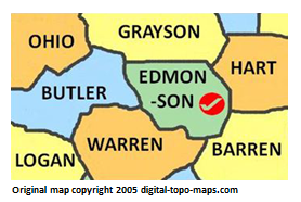 | current | ★ Approved revision 09:33, 6 June 2018 | 278 × 186 (91 KB) | Dotxinxoz (talk | contribs) | Map courtesy of [https://www.digital-topo-maps.com/county-map/kentucky.shtml Digital-Topo-Maps.com]. Copyright 2005.<br> Category:Kentucky Maps Category:Edmonson County, Kentucky |