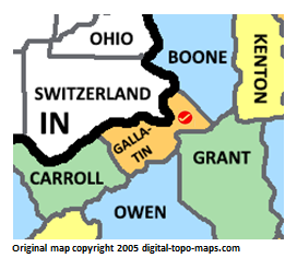 | current | ★ Approved revision 09:39, 6 June 2018 | 272 × 236 (39 KB) | Dotxinxoz (talk | contribs) | Map courtesy of [https://www.digital-topo-maps.com/county-map/kentucky.shtml Digital-Topo-Maps.com]. Copyright 2005.<br> Category:Kentucky Maps Category:Gallatin County, Kentucky |