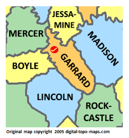 | current | ★ Approved revision 09:40, 6 June 2018 | 268 × 285 (46 KB) | Dotxinxoz (talk | contribs) | Map courtesy of [https://www.digital-topo-maps.com/county-map/kentucky.shtml Digital-Topo-Maps.com]. Copyright 2005.<br> Category:Kentucky Maps Category:Garrard County, Kentucky |