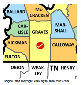 | current | ★ Approved revision 12:55, 7 June 2018 | 267 × 278 (43 KB) | Dotxinxoz (talk | contribs) | Map courtesy of [https://www.digital-topo-maps.com/county-map/kentucky.shtml Digital-Topo-Maps.com]. Copyright 2005.<br> Category:Kentucky Maps Category:Graves County, Kentucky |