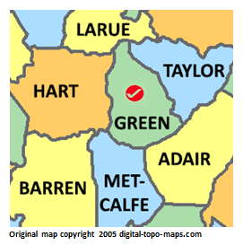 | current | ★ Approved revision 12:57, 7 June 2018 | 271 × 273 (44 KB) | Dotxinxoz (talk | contribs) | Map courtesy of [https://www.digital-topo-maps.com/county-map/kentucky.shtml Digital-Topo-Maps.com]. Copyright 2005.<br> Category:Kentucky Maps Category:Green County, Kentucky |