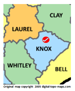 | current | ★ Approved revision 20:50, 26 June 2018 | 240 × 292 (41 KB) | Bethcottam (talk | contribs) | Map courtesy of [https://www.digital-topo-maps.com/county-map/kentucky.shtml]. Copyright 2005.<br> Category:Kentucky Maps Category:Knox County, Kentucky |