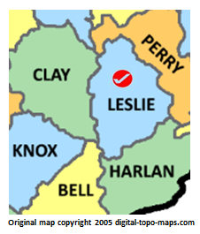 | current | ★ Approved revision 13:36, 7 June 2018 | 226 × 265 (45 KB) | Dotxinxoz (talk | contribs) | Map courtesy of [https://www.digital-topo-maps.com/county-map/kentucky.shtml Digital-Topo-Maps.com]. Copyright 2005.<br> Category:Kentucky Maps Category:Leslie County, Kentucky |
