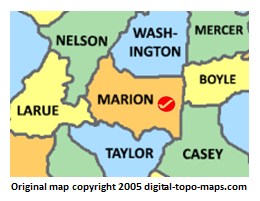 | current | ★ Approved revision 13:44, 7 June 2018 | 260 × 201 (40 KB) | Dotxinxoz (talk | contribs) | Map courtesy of [https://www.digital-topo-maps.com/county-map/kentucky.shtml Digital-Topo-Maps.com]. Copyright 2005.<br> Category:Kentucky Maps Category:Marion County, Kentucky |