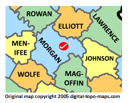 | current | ★ Approved revision 18:01, 7 June 2018 | 258 × 207 (43 KB) | Dotxinxoz (talk | contribs) | Map courtesy of [https://www.digital-topo-maps.com/county-map/kentucky.shtml Digital-Topo-Maps.com]. Copyright 2005.<br> Category:Kentucky Maps Category:Morgan County, Kentucky |
