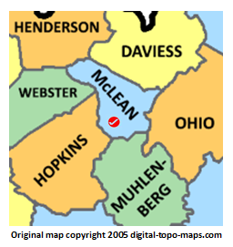 | current | ★ Approved revision 17:54, 7 June 2018 | 256 × 271 (53 KB) | Dotxinxoz (talk | contribs) | Map courtesy of [https://www.digital-topo-maps.com/county-map/kentucky.shtml Digital-Topo-Maps.com]. Copyright 2005.<br> Category:Kentucky Maps Category:McLean County, Kentucky |