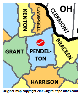 | current | ★ Approved revision 18:36, 7 June 2018 | 258 × 304 (52 KB) | Dotxinxoz (talk | contribs) | Map courtesy of [https://www.digital-topo-maps.com/county-map/kentucky.shtml Digital-Topo-Maps.com]. Copyright 2005.<br> Category:Kentucky Maps Category:Pendleton County, Kentucky |