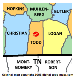 | current | ★ Approved revision 19:10, 7 June 2018 | 252 × 264 (35 KB) | Dotxinxoz (talk | contribs) | Map courtesy of [https://www.digital-topo-maps.com/county-map/kentucky.shtml Digital-Topo-Maps.com]. Copyright 2005.<br> Category:Kentucky Maps Category:Todd County, Kentucky |