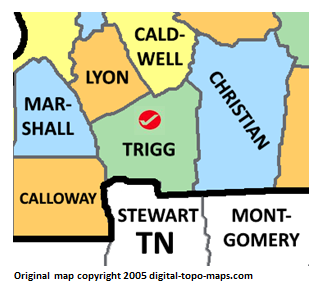 | current | ★ Approved revision 19:11, 7 June 2018 | 322 × 292 (46 KB) | Dotxinxoz (talk | contribs) | Map courtesy of [https://www.digital-topo-maps.com/county-map/kentucky.shtml Digital-Topo-Maps.com]. Copyright 2005.<br> Category:Kentucky Maps Category:Trigg County, Kentucky |