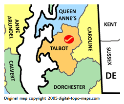 | current | ★ Approved revision 12:41, 8 June 2018 | 254 × 213 (37 KB) | Dotxinxoz (talk | contribs) | Map courtesy of [https://www.digital-topo-maps.com/county-map/maryland.shtml Digital-Topo-Maps.com]. Copyright 2005.<br> Category:Maryland Maps Category:Talbot County, Maryland |