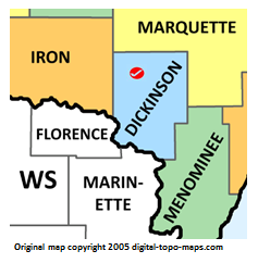 | current | ★ Approved revision 10:21, 17 October 2018 | 237 × 242 (25 KB) | Bethcottam (talk | contribs) | Map courtesy of [https://www.digital-topo-maps.com/county-map/michigan.shtml]. Copyright 2005.<br> Category:Michigan Maps Category:Dickinson County, Michigan |