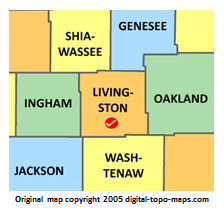 | current | ★ Approved revision 14:23, 22 October 2018 | 224 × 210 (19 KB) | Bethcottam (talk | contribs) | Map courtesy of [https://www.digital-topo-maps.com/county-map/michigan.shtml]. Copyright 2005.<br> Category:Michigan Maps Category:Livingston County, Michigan |