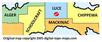 | current | ★ Approved revision 14:34, 22 October 2018 | 351 × 145 (26 KB) | Bethcottam (talk | contribs) | Map courtesy of [https://www.digital-topo-maps.com/county-map/michigan.shtml]. Copyright 2005.<br> Category:Michigan Maps Category:Luce County, Michigan |