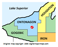 | current | ★ Approved revision 12:37, 24 October 2018 | 224 × 183 (20 KB) | Bethcottam (talk | contribs) | Map courtesy of [https://www.digital-topo-maps.com/county-map/michigan.shtml]. Copyright 2005.<br> Category:Michigan Maps Category:Ontonagon County, Michigan |