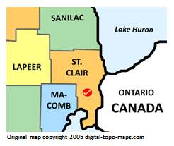 | current | ★ Approved revision 12:55, 26 October 2018 | 246 × 207 (22 KB) | Bethcottam (talk | contribs) | Map courtesy of [https://www.digital-topo-maps.com/county-map/michigan.shtml]. Copyright 2005.<br> Category:Michigan Maps Category:St. Clair County, Michigan |