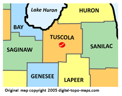 | current | ★ Approved revision 13:16, 26 October 2018 | 251 × 199 (22 KB) | Bethcottam (talk | contribs) | Map courtesy of [https://www.digital-topo-maps.com/county-map/michigan.shtml]. Copyright 2005.<br> Category:Michigan Maps Category:Tuscola County, Michigan |