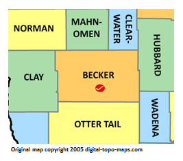Thumbnail for version as of 15:59, 30 October 2018267 × 234 (24 KB)Bethcottam (talk | contribs)Map courtesy of [https://www.digital-topo-maps.com/county-map/minnesota.shtml]. Copyright 2005.<br> Category:Minnesota Maps Category:Becker County, Minnesota