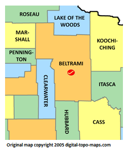 Thumbnail for version as of 16:10, 30 October 2018255 × 301 (30 KB)Bethcottam (talk | contribs)Map courtesy of [https://www.digital-topo-maps.com/county-map/minnesota.shtml]. Copyright 2005.<br> Category:Minnesota Maps Category:Beltrami County, Minnesota