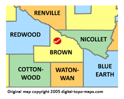 | current | ★ Approved revision 22:34, 30 October 2018 | 249 × 198 (25 KB) | Bethcottam (talk | contribs) | Map courtesy of [https://www.digital-topo-maps.com/county-map/minnesota.shtml]. Copyright 2005.<br> Category:Minnesota Maps Category:Brown County, Minnesota |