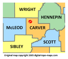| current | ★ Approved revision 23:04, 30 October 2018 | 262 × 227 (28 KB) | Bethcottam (talk | contribs) | Map courtesy of [https://www.digital-topo-maps.com/county-map/minnesota.shtml]. Copyright 2005.<br> Category:Minnesota Maps Category:Carver County, Minnesota |