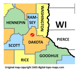 | current | ★ Approved revision 11:11, 1 November 2018 | 275 × 249 (35 KB) | Bethcottam (talk | contribs) | Map courtesy of [https://www.digital-topo-maps.com/county-map/minnesota.shtml]. Copyright 2005.<br> Category:Minnesota Maps Category:Dakota County, Minnesota |